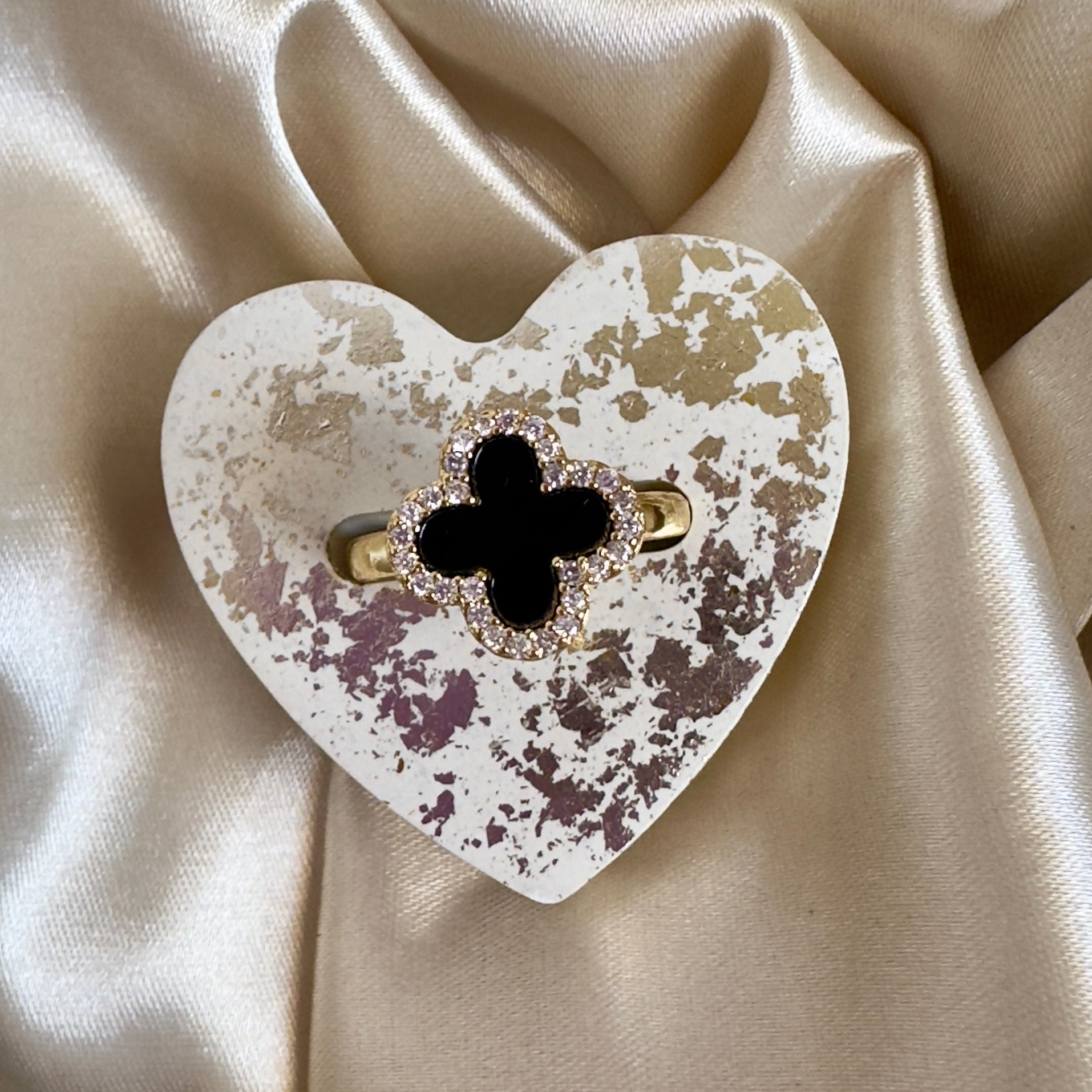 Anillo trébol negro circones